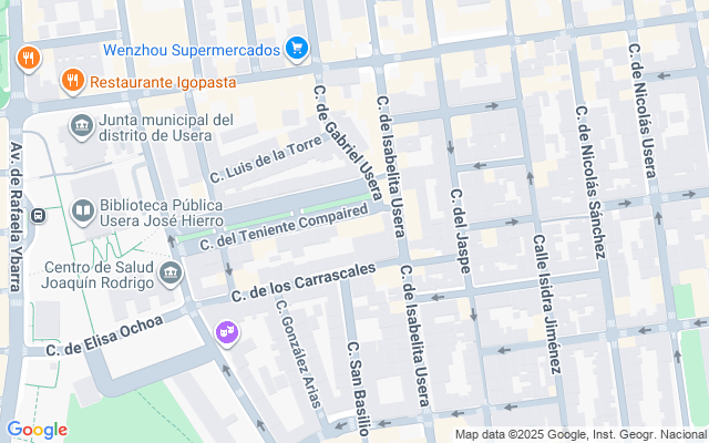 En cuanto a comunicaciones, la vivienda se encuentra a escasos minutos de la estación de metro Usera (línea 6) y también próxima a la estación Plaza Elíptica (líneas 6 y 11), lo que permite una excelente conexión con toda la ciudad. Además, varias líneas de autobús como la y N17 operan en las inmediaciones. Destaca el Centro de Salud a 150 metros, la Junta Municipal de Usera a 250 metros y el Parque Pradolongo a 5 minutos. El acceso en vehículo privado es rápido gracias a la cercanía con la A-42, M-30 y otras vías principales.
