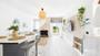 - Un salón con cocina abierta y acceso a una bonita terraza para desayunos al sol.