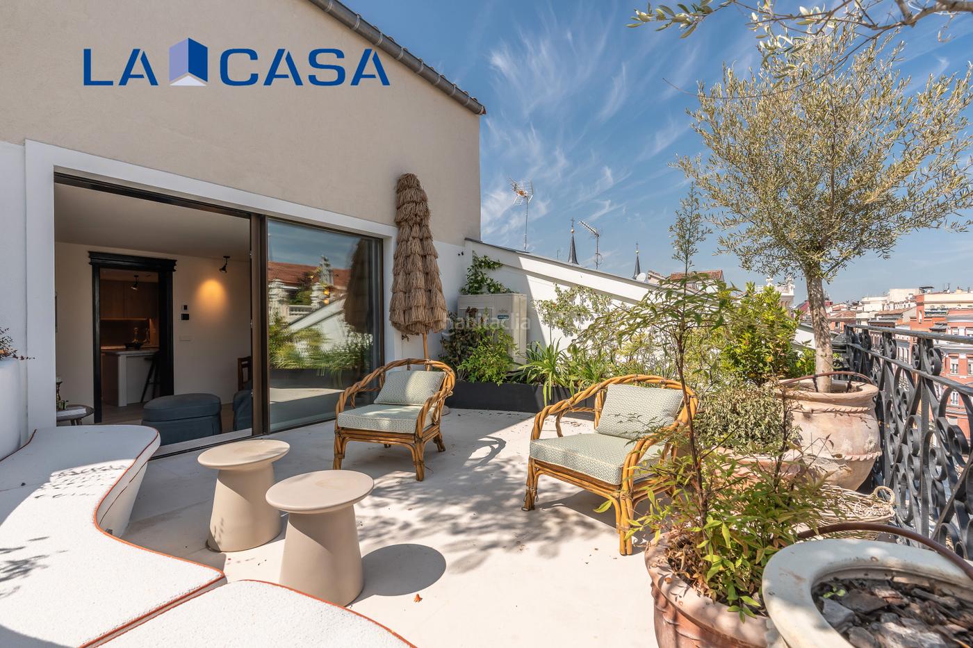 La joya de la vivienda es su espectacular terraza privada con vistas panorámicas a los tejados del centro histórico de Madrid, el lugar perfecto para disfrutar de la luz y la energía de la ciudad.