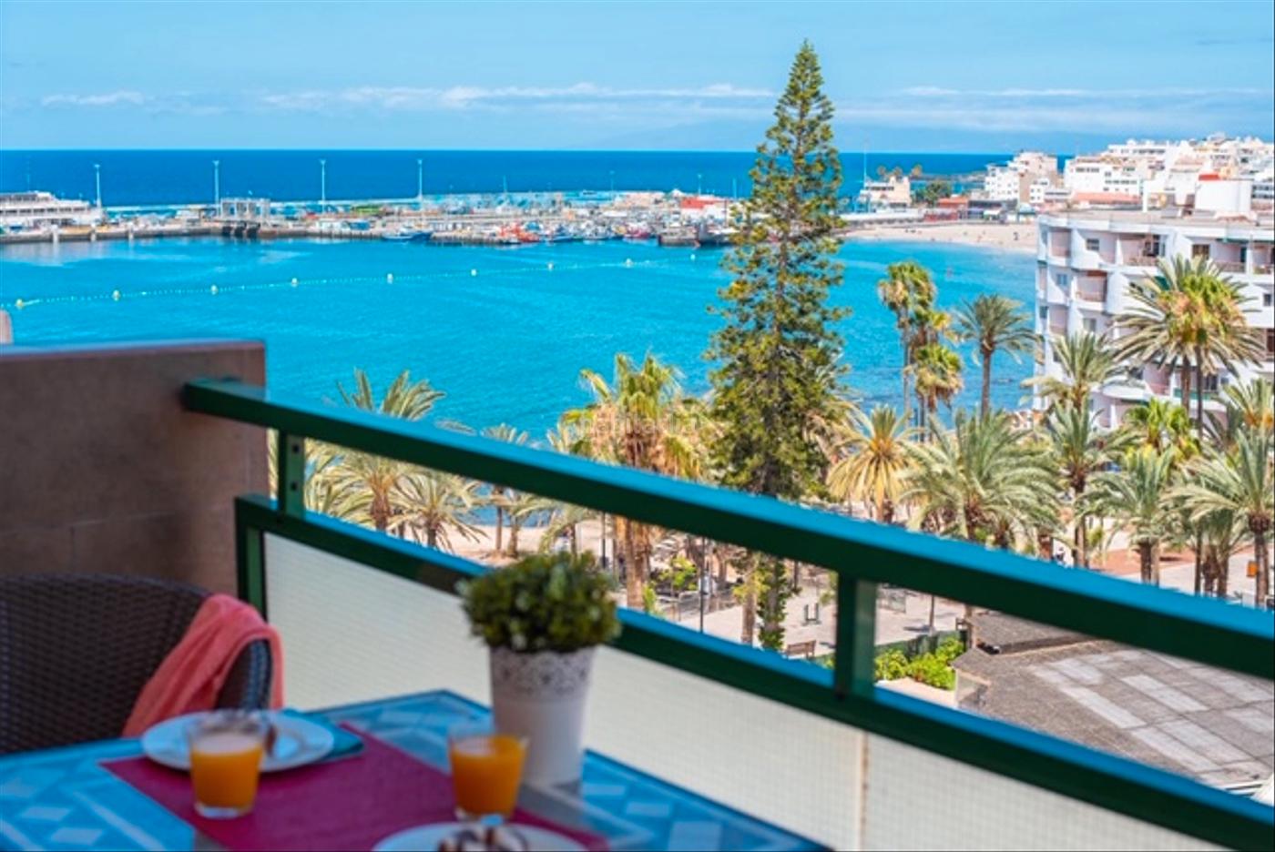 El apartamento, ubicado en una planta alta, ofrece una vista completa del mar y del puerto de Los Cristianos, con una extensión aproximada de 35 m2.