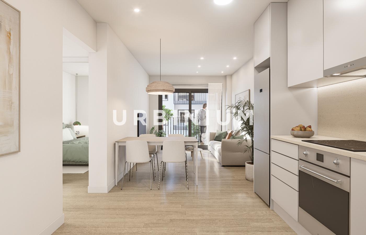 Distribuidos en cocina abierta junto a la sala de estar, dormitorios, uno o dos baños y zona de lavadero separada. También dispondrá de armarios empotrados, sanitarios, muebles de baño y la cocina estará equipada con mobiliaria, vitrocerámica, horno y campana extractora.