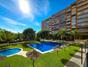 Urbanización con amplias zonas ajardinadas, piscina, club social y dos pistas de pádel.