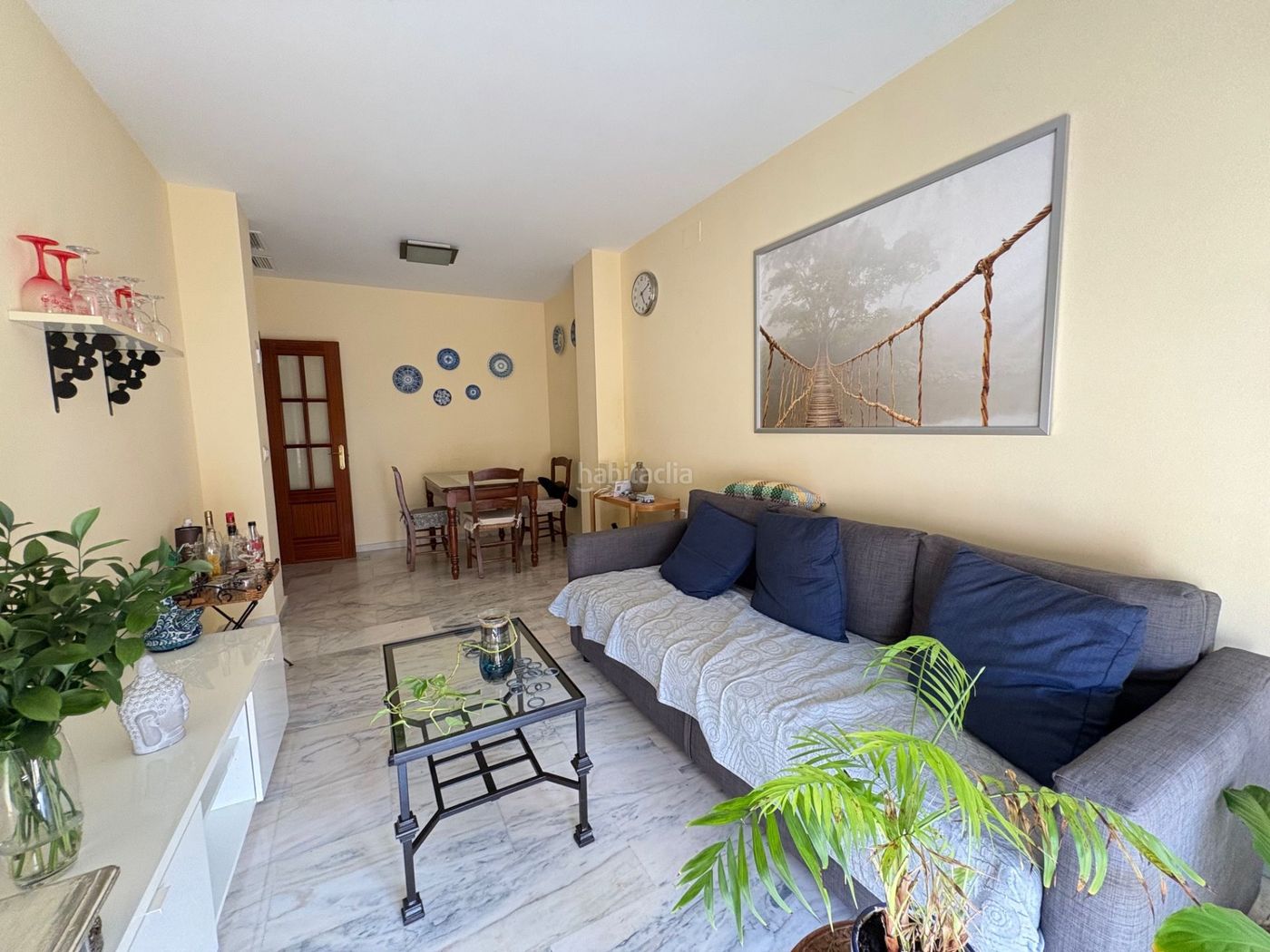 La propiedad cuenta con tres amplios dormitorios, perfectos para familias o para quienes buscan espacio adicional. Además, dispone de dos baños completos, lo que añade comodidad en el día a día. Los acabados son de alta calidad, con suelos de mármol que aportan elegancia y armarios empotrados que optimizan el almacenamiento. Las ventanas de doble acristalamiento aseguran un ambiente tranquilo y eficiente energéticamente.