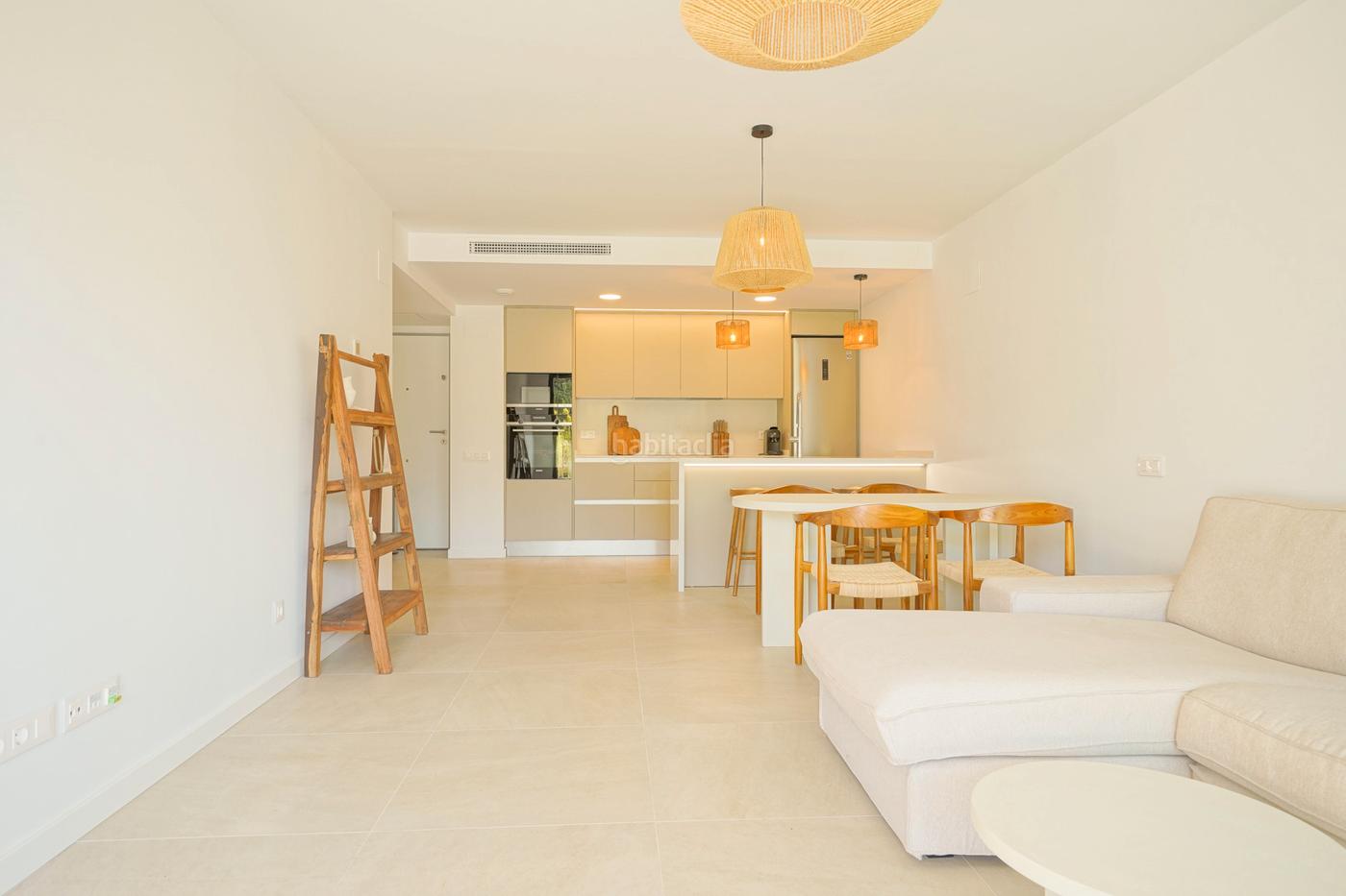 Terminado a principios de 2024, este fantástico apartamento se encuentra en un hermoso complejo residencial a solo 300 m de la playa de Denia. El apartamento está en la planta baja y tiene preciosas vistas sobre el exuberante jardín y la piscina. El apartamento consta de un salón-comedor con una moderna cocina americana con isla. La cocina está equipada con placa de inducción, horno eléctrico, microondas, nevera-congelador y lavavajillas. También hay un dormitorio principal con baño en suite y un segundo dormitorio doble con baño independiente. Ambos dormitorios tienen armarios empotrados y el dormitorio principal tiene acceso directo a la terraza a través de grandes ventanas correderas. Ambos cuartos de baño tienen una ducha y están acabados con materiales de alta calidad. La propiedad también cuenta con armarios empotrados adicionales en el pasillo que proporciona comodidad adicional. Las grandes ventanas correderas del salón dan a una terraza cubierta muy espaciosa con jardín privado. La terraza dispone de iluminación, enchufes y grifo de agua y está pavimentada en porcelana antideslizante. Además, hay acceso directo al jardín y la piscina comunitarios. Para garantizar el máximo nivel de confort y un importante ahorro energético, el piso dispone de calefacción por suelo radiante alimentado por una bomba de calor y las ventanas son de doble acristalamiento. El apartamento también dispone de aire acondicionado frío/calor, persianas eléctricas, un sistema de ventilación automático y muy buen aislamiento acústico. Además, se vende amueblado por lo que está inmediatamente listo para su uso. Los muebles son como nuevos y de la marca de calidad Sklum. El apartamento también incluye una plaza de aparcamiento en el garaje subterráneo y un trastero. El complejo está equipado con todas las comodidades para relajarse plenamente sin salir del complejo. Hay un jardín mediterráneo muy bonito, cuidado hasta el último detalle, una gran piscina con jacuzzi y zona para tomar el sol donde se puede disfrutar de vistas al Montgó, un parque infantil, un gimnasio y un cobertizo para bicicletas. Además, el piso está a poca distancia de la playa y del puerto de Denia, donde se pueden encontrar varios bares y restaurantes acogedores. No pierda esta oportunidad y solicite ya su visita.