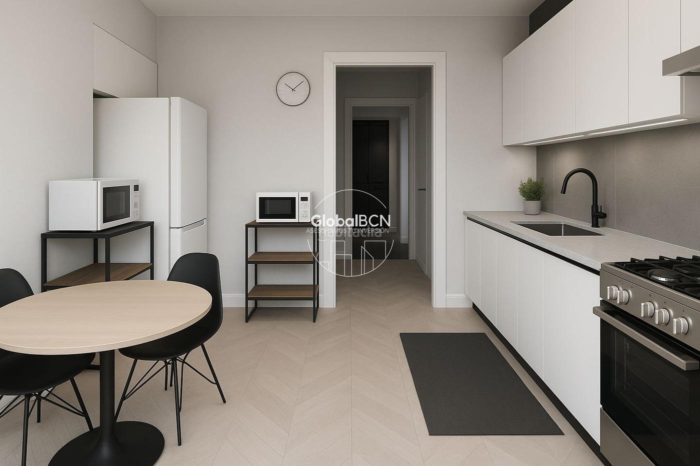 Global BCN presenta este piso de 80m² con una distribución ideal y gran potencial. Dispone de 2 habitaciones dobles, un amplio salón con salida directa a una gran terraza de 20m², perfecta para disfrutar del aire libre. La cocina tipo office cuenta con galería integrada y salida a patio interior de 7m2, baño completo de 4 piezas.