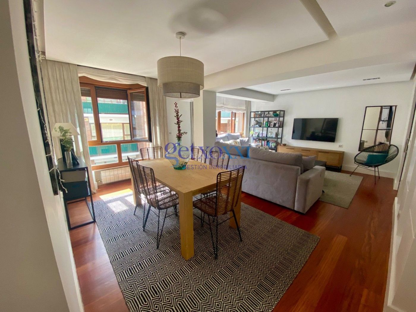 La vivienda se distribuye en un acogedor hall de entrada que da paso a un amplio y elegante salón comedor con grandes ventanales.