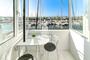La vivienda dispone de un luminoso salón-comedor con aire acondicionado y una cocina americana totalmente equipada. Desde el salón se accede a una acogedora terraza cerrada, perfecta para disfrutar de una cena en pareja mientras contemplas la belleza y la calma de los canales.