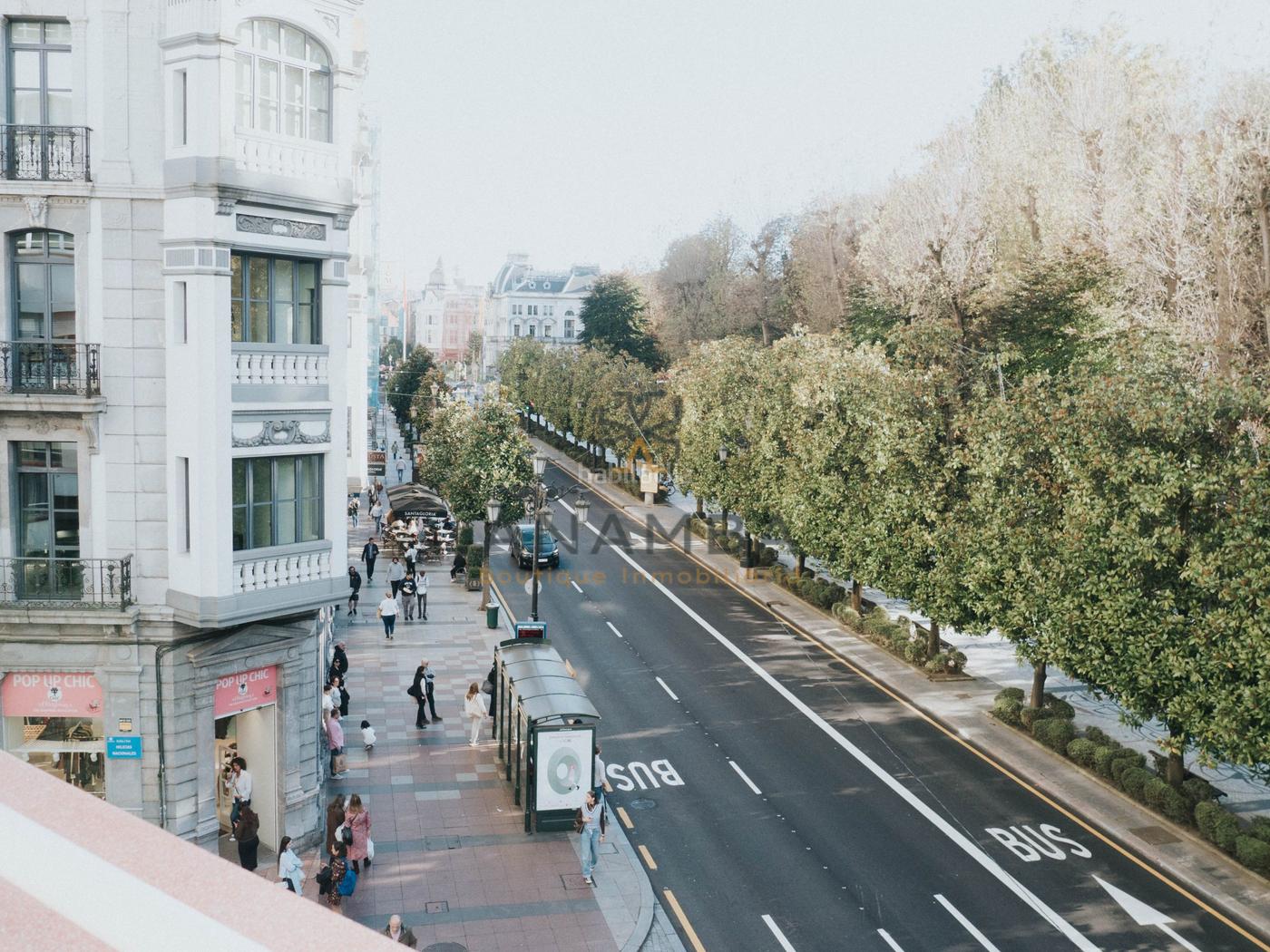 Muy LUMINOS0 y único en pleno centro de Oviedo. Está situado en una esquina privilegiada donde confluyen la emblemática calle Uría y Milicias Nacionales, lo que le proporciona una orientación inigualable y una excelente entrada de luz natural desde múltiples ángulos.