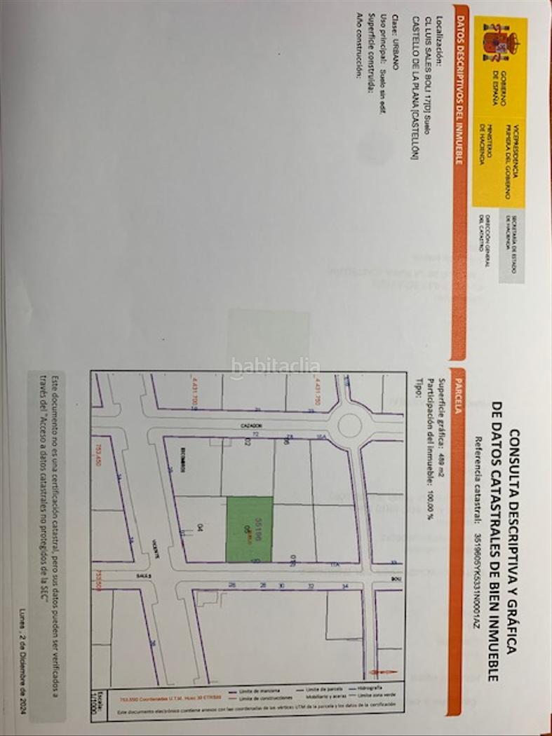 PARCELA DE 489 M2 SITUADA EN LA CALLE LUIS SALES BOLI 17, RODEADA DE VIVIENDAS YA CONSTRUIDAS. TIENE UNA VOLUMETRIA PERMITA SOBRE RASANTE DE 366´75 M2, YA QUE LA CONSTRUCCION BAJO RASANTE (GARAJE), NO COMPUTA COMO VOLUMETRIA. EL IMPUESTO QUE SE APLICA SOBRE EL PRECIO DE VENTA ES DEL 10% ITP, YA QUE ES PERSONA FISICA LA QUE VENDE. PARCELA MUY BIEN UBICADA EN EL CENTRO DE LA ZONA DE LLEDO 3. COMISION DE INTERMEDIACION DEL 2% A CARGO DE LA PARTE COMPRADORA