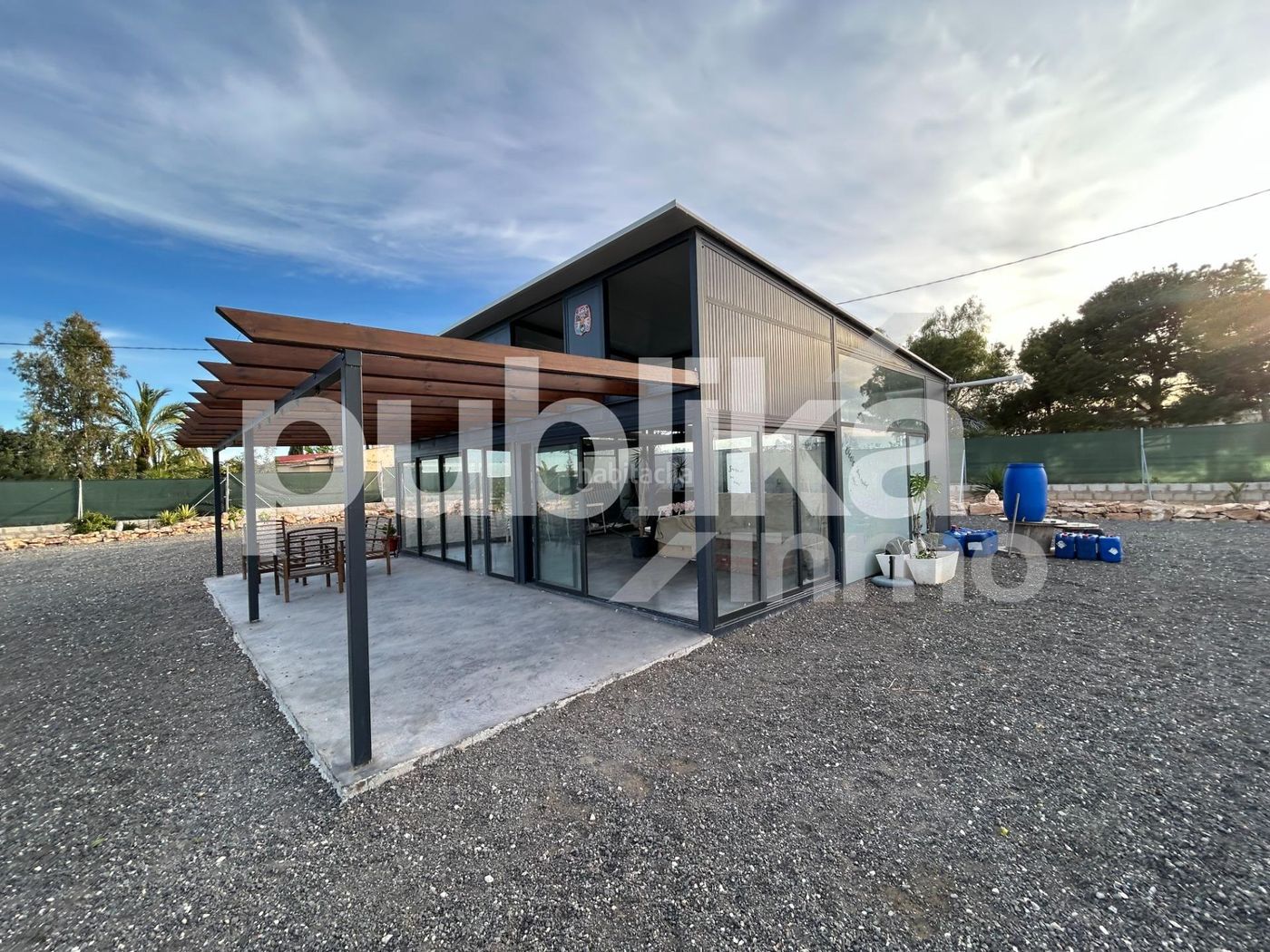 La propiedad cuenta con una sección vallada de aproximadamente 1.700 m2 donde se ha instalado una estructura acristalada de aluminio ideal para disfrutar del entorno durante todo el año; incluye también un porche adicional de unos 20 m2 perfecto para actividades al aire libre.