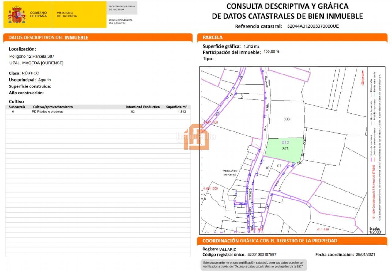 Finca Rústica, paraje Uzal, en el municipio de Maceda (Ourense) la cual cuenta con una superficie de 1812m2.Polígono 12, Parcela 307.