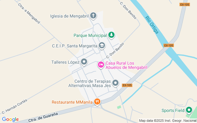 carretera de Mengabril a Guareña a través de camino, o bien desde la carretera del Canal del Zújar. Tiene una superficie