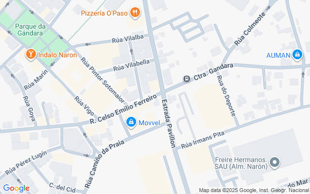 Situado en A Gándara, Narón y da a tres calles, al norte Rua Clara Campoamor, al este Estrada Pavillón y al sur estrada Gándara.