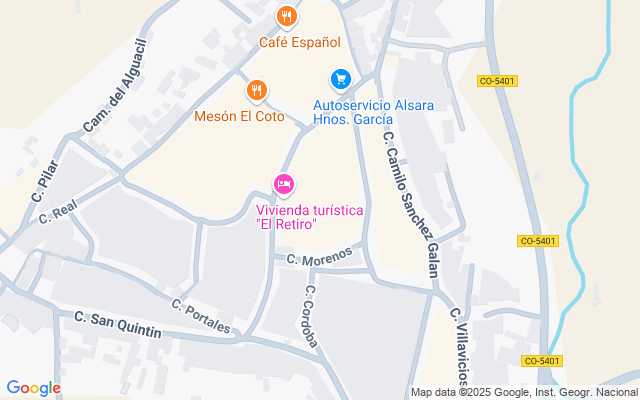 La finca esta ubicada muy próxima al pueblo. Hay unos dos kilómetros desde la misma hasta el centro del pueblo, y a unos escasos sesenta kilómetros de Córdoba, por lo que para una persona cuya residencia habitual sea Córdoba está a media hora de camino, ya que la carretera es espléndida tanto en anchura como en asfalto.