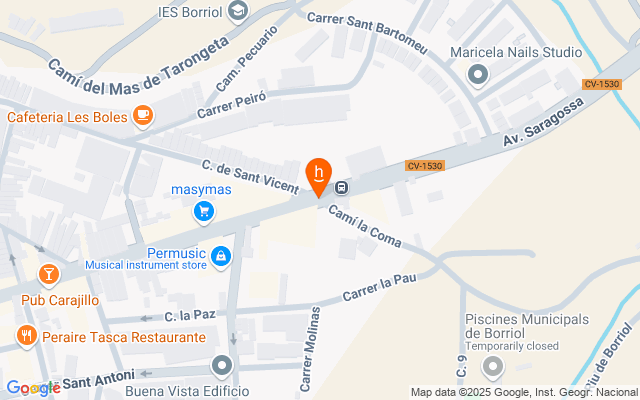 Parcela de 513000 metros cuadrados y buena accesibilidad al lado del camino. A 15 km de Castellón, cuenta con fácil acceso a través de N-340, por la CV-18 y a través de la CS-22. El término municipal de Borriol limita con las localidades de Castellón de la Plana, Vilafames y Cabanes, todas ellas de la provincia Castellón.