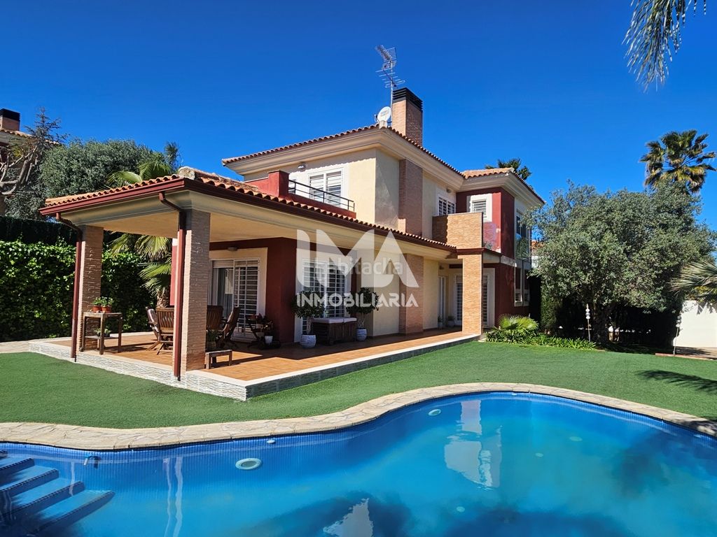 El exterior es uno de sus grandes atractivos, un entorno ideal para disfrutar durante todo el año. La piscina, revestida de gresite, con iluminación y una elegante escalera romana, se complementa con una acogedora zona de paellero y barbacoa, perfecta para reuniones y momentos de ocio. Todo ello se integra con una fantástica terraza en forma de “L”, con agradables vistas al jardín y a la piscina.
