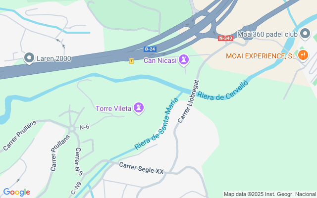 • Ubicación: Centro de una loma, con vistas a la urbanización de Torre Vileta y rodeada por las rieras de Cervelló y Santa María.