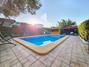 El exterior es uno de sus mayores atractivos: una amplia zona ajardinada con árboles frondosos ofrece sombra natural y rincones para el descanso. La piscina privada, rodeada de vegetación y con zona de hamacas, se convierte en el corazón del verano. Junto a ella, una cocina exterior y barbacoa permiten disfrutar de comidas al aire libre con total comodidad.
