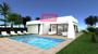 Precioso chalet independiente de una planta a construir en parcela vallada con piscina privada (4 x 8) y aparcamiento para sus coc