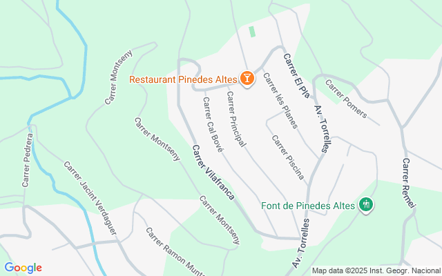 Ubicado en la urbanización Pinedas Altas. A 9 km de Torrelles de Foix, dónde hay todo tipo de comercios, servicios, administraciones y colegios.