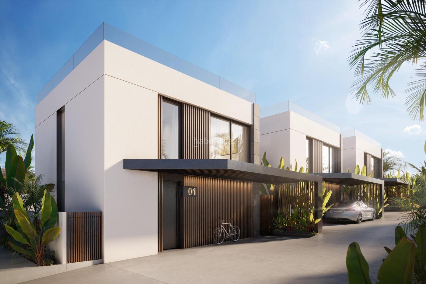 El objeto consta de 6 villas individuales de dos pisos, cada una con su propia piscina de 3x8 m² y garaje. La fecha de entrega está programada para el año 2025, con un costo a partir de 348,000 euros. Una superficie de 120 m², 3 habitaciones y 2 baños. La primera aportación es de 12,000 euros.