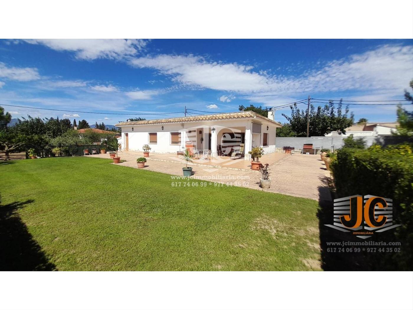 Xalet ubicat a Tortosa en una superfície de 120 m² i parcel·la de 4000 m² distribuïts en un sol nivell. 4 habitacions (2 doble suite, 1 individual i una habitació convertible ara es troba com un rentador), 2 banys/s, calefacció (gasoil), cuina equipada amb gran saló-menjador, estat de conservació: bon estat. i aigua pou comunitari. A l´exterior trobem una àmplia zona de jardí amb àrea de barbacoa i una zona de relaxament al porxo., jardí. Xalet situat en una zona tranquil·la amb vistes precioses.