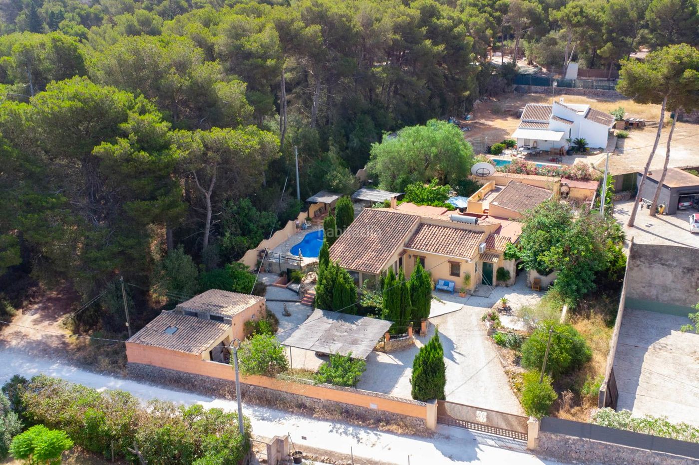 Esta villa es ideal para quienes buscan un entorno tranquilo y apacible, pero quieren estar a poca distancia de las instalaciones. Debido a su ubicación en el Parque Natural del Montgó, estás en una zona muy tranquila a sólo 5 minutos en coche tanto de Jávea como de Denia. La vivienda consta de un salón con grandes ventanales donde podrás disfrutar de las hermosas vistas del Montgó, una sala de estar con chimenea, un comedor, una cocina con cocina de gas y horno eléctrico, un lavadero, dos dormitorios, ambos con vestidor y armarios con espejos, y un cuarto de baño. El comedor da acceso a un patio donde hay un tercer dormitorio. Desde el patio también hay una escalera que conduce a la azotea. En la parte trasera de la villa hay un apartamento de invitados que consta de un salón-comedor, una cocina, un dormitorio doble y un cuarto de baño. El apartamento tiene entrada privada y terraza privada, ideal para la familia o invitados. También hay un garaje con un taller adyacente (que puede convertirse en un 5º dormitorio) y una cochera con espacio para dos coches. En el lado este de la villa hay una piscina de 9×5 con una terraza que la rodea y un gran comedor cubierto con capacidad para 10 personas alrededor de una mesa de mosaico marroquí. Caminos de grava serpentean hasta la esquina más alejada de la parcela, donde hay un estanque con peces y un banco. El chalet tiene aire acondicionado en el dormitorio principal, calefacción de gas, doble acristalamiento, tejado aislante, suelos de terracota, portón eléctrico e iluminación exterior. Además, toda la parcela está vallada. Para los amantes del senderismo, desde el chalet parten rutas por el bosque que conducen a la reserva natural y a un mirador desde el que se divisa toda la bahía de Jávea. Toda la parcela está vallada y en el lado este del chalet se ve un denso bosque que garantiza total intimidad junto a la piscina. ¡Un verdadero paraíso para los amantes de la naturaleza!