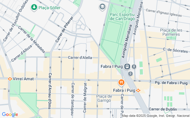 Situado en Nou Barris, a solo 5 minutos de la estación de Fabra i Puig (L1 y Rodalies) y a 9 minutos la estación Virrei Amat (L5) y cerca de El Corte Inglés, el parque de Can Dragó y el centro comercial SOM Multiespai, una zona con tiendas, supermercados, gimnasios y opciones de ocio. También se encuentra muy bien comunicado con el centro de Barcelona y otros barrios mediante metro y varias líneas de autobús.