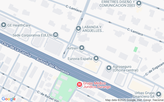 El edificio se encuentra situado en la zona empresarial de la Urbanización La Florida, en el km. 13 de la autovía nacional A-6.
