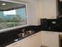 Cocina moderna y equipada, con encimera de granito, horno, campana de acero, vitrocerámica y microondas integrado.