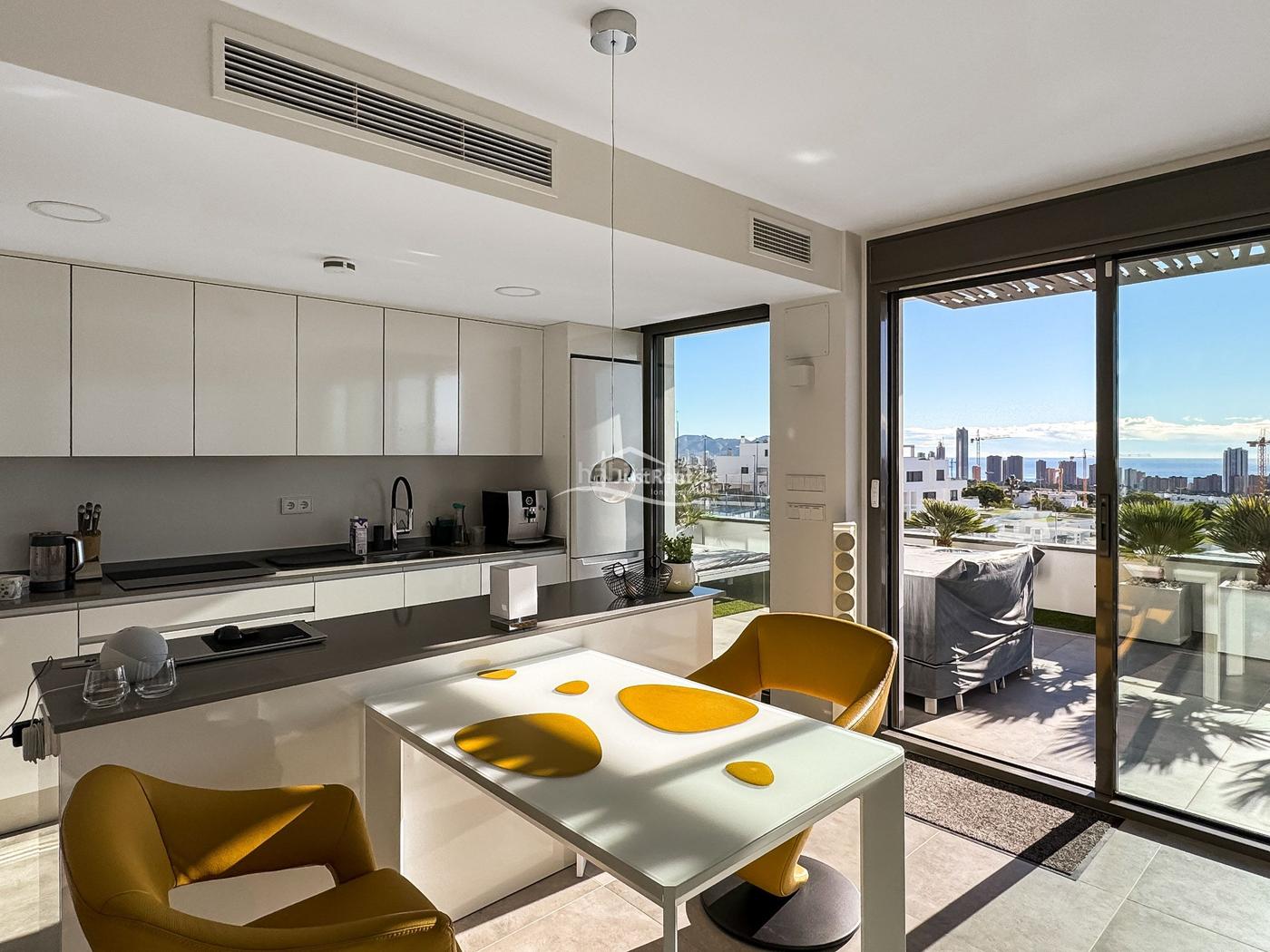 Presentamos un lujoso apartamento de 3 dormitorios y 2 baños en alquiler en la codiciada ubicación de Balcón de Finestrat-Terra Marina, Finestrat. Esta propiedad moderna y usada cuenta con un impresionante 138m2 de espacio útil y una superficie construida de 115m2. El apartamento ofrece impresionantes vistas al mar, la montaña y la ciudad, creando el escenario perfecto para una experiencia de vida de ensueño.