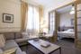El apartamento dispone de un elegante salón y una cocina independiente totalmente equipada con horno, vitrocerámica, microondas, frigorífico, lavavajillas, cafetera, hervidor, etc. La zona de la lavadora se encuentra separada de la cocina. El apartamento cuenta con tres habitaciones dobles, todas con cama doble y tres baños completos, todos ellos ensuite, dos de ellos equipados con ducha y el tercero con bañera.