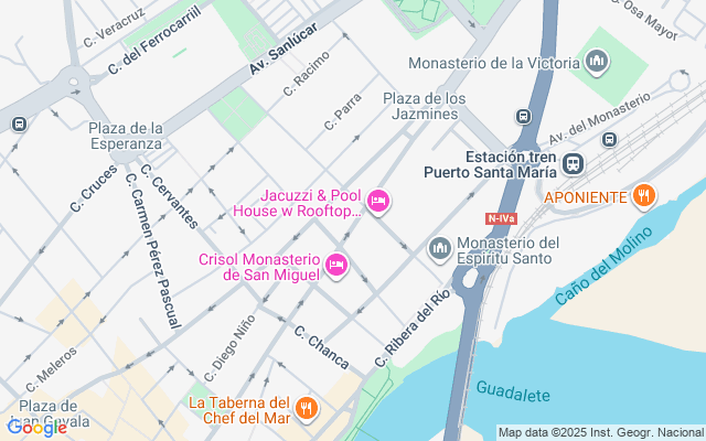 Localizado a unos minutos de la estación de Renfe y a cinco minutos caminando de la Iglesia Mayor y de la Ribera del Río, junto a todos los servicios y restaurantes de la zona, zonas de ocio y cultura, además está muy cercano al muelle del ferry con conexión directa a Cádiz.
