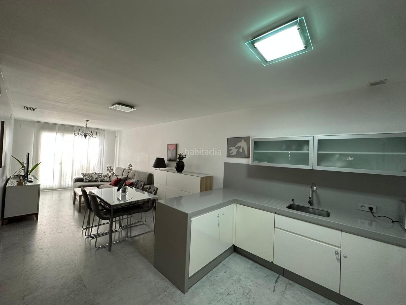 La vivienda se distribuye con un hall, funcional por su gran armario empotrado, y con un accesible aseo de cortesía. La cocina moderna y equipada con todos los electrodomésticos y unida al salón-comedor, crea un espacio diáfano, amplio, con salida a una terraza con cerramientos y ventanas abatibles aportando aire libre, calidez y mucha luz natural.